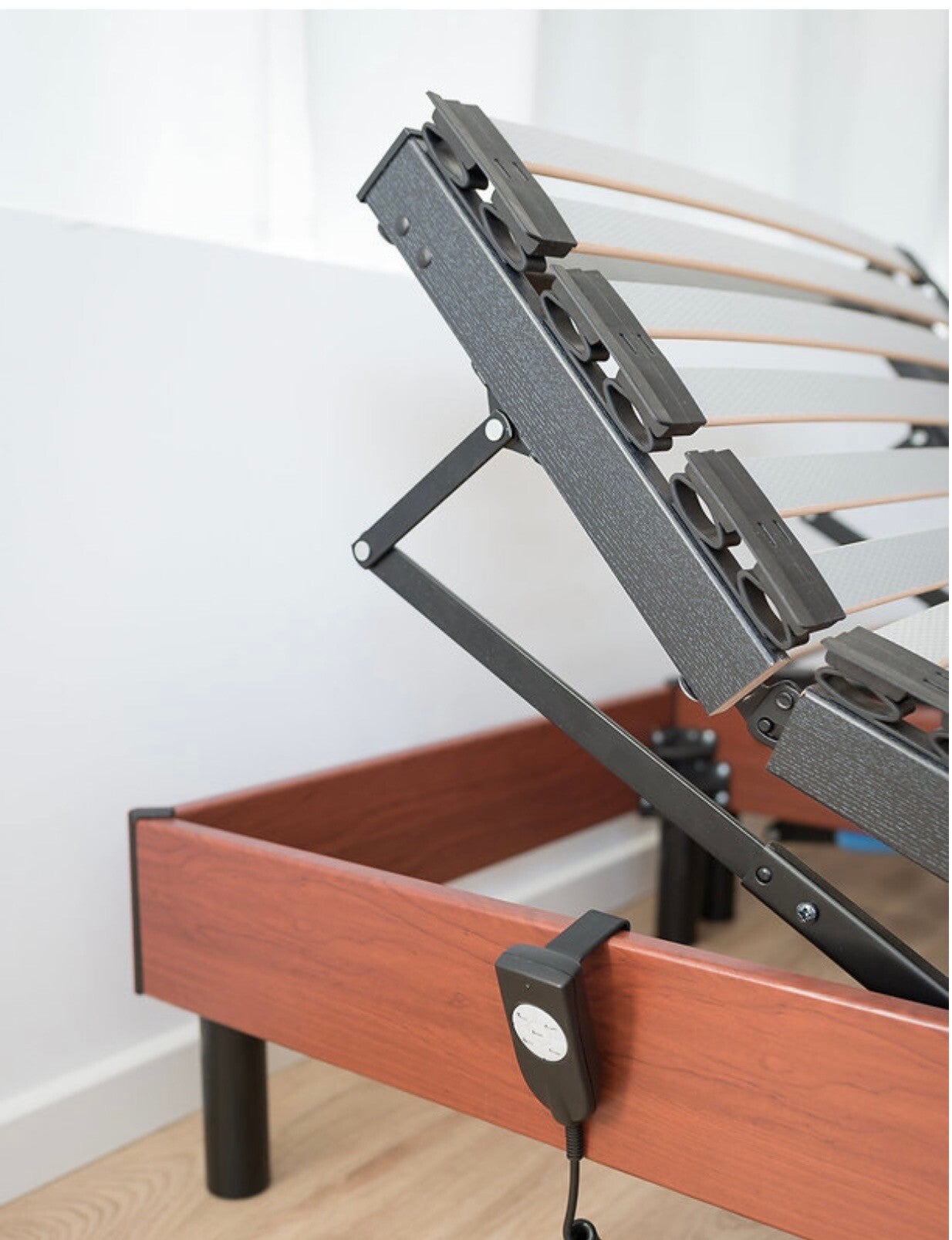 Le sommier est équipé d’un moteur double puissance (2 x 4 500 N) permettant un réglage rapide et fluide des différentes positions.